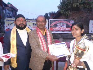 सम्मान कार्यक्रम को प्रमुख अतिथि मा वीरगंज महानगरपालिका का नगर प्रमुख बिजय सरावगी तथा विशिष्ट अतिथि वीरगंज महानगरपालिका वडा नं १०को वडा अध्यक्ष रामनगिना प्रसाद साह कानुले गोरखामा भएको राष्ट्रिय कराते प्रतियोगिता बाट बिजेता भएका लाइ प्रमाण पत्र र शिरिज ले सम्मान गरेका थिए।