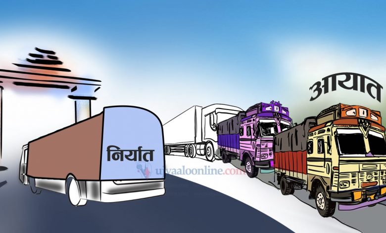व्यापार घाटा पाँच महिनामै झन्डै साढे सात खर्ब रुपैयाँ