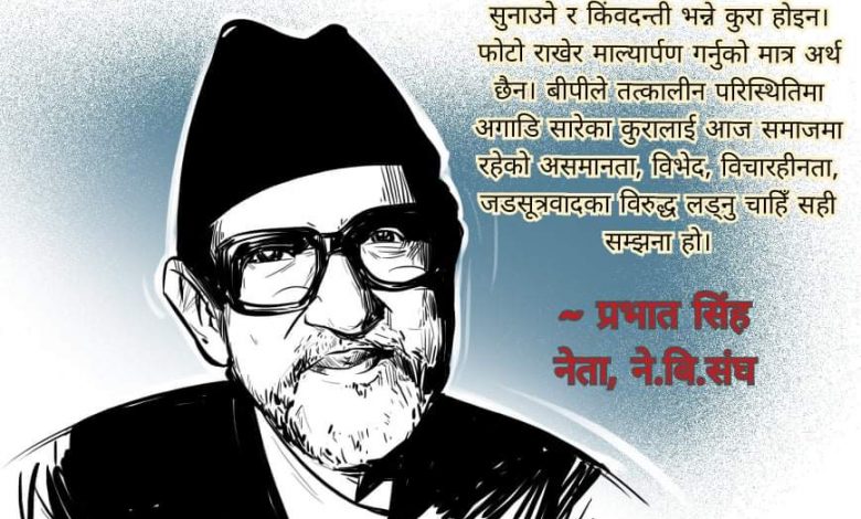 बिरगंज – बीपीलाई सम्झनु भनेको उहाँका कथा सुनाउने र किंवदन्ती भन्ने कुरा होइन। फोटो राखेर माल्यार्पण गर्नुको मात्र अर्थ छैन। बीपीले तत्कालीन परिस्थितिमा अगाडि सारेका कुरालाई आज समाजमा रहेको असमानता, विभेद, विचारहीनता, जडसूत्रवादका विरुद्ध लड्नु चाहिँ सही सम्झना हो।देश र जनताको लागि आफ्नो सम्पूर्ण जीवन उत्सर्जन गर्ने महा पुरुष प्रतिको यो निरीह संझना ले केही लाई मात्र पनि झक्झकाउन सक्यो भने त्यहि नै महामानव को जन्मजयन्ती हुनेछ र यही नै पंतिकारको लागि आत्मा संतोषको बिषय हुनेछ। राजनीति लाई नाफा घाटाको रुपमा हेर्ने वर्तमान तथाकथित राजनितिज्ञहरुको नजरमा निश्चय पनी बि.पि एक असफल राजनीतिज्ञ थिए।तर आम नेपाली र स्वयं बि.पि ले कहिल्यै आफुलाइ असफल संझनु भएन,कारण थियो एक उच्च कोटिको राजनितिक बिचार्। राजनीति विचार ले चल्ने हो र अहिलेको राजनितिक बिचार बिपि बाट नै प्रादुर्भाव भएको हो भलै कार्यान्वयन गर्नेहरुले” बिचार “लाई भ्रष्टिकरण गर्दै निजि स्वार्थप्रेरित राजनीति मा लिप्त भए ।परिणाम आज देश र जनताको दुर्दशा उल्लेख गर्ने उपयुक्त शब्द पनि भेटिदैन। तथापि निर्लज्जहरु देशको संबृद्धी र बि पि को नाम भजाउन भने प्रतिस्पर्धा गर्दैछन। यसपाली आफ्नो कुरा भन्दा पनि बि पि बारे बिपिलाइ धेरै बुझेका र सहकार्य गरेका समाजबादी चिन्तक भोला चटर्जी को पुस्तक “बि पि कोइराला ,एक क्रान्तिकारी ब्याक्तित्व “मा अनुबादकहरुको तर्फबाट बि पि बारे ब्यक्त उक्त पुस्तक का केही अंशहरु पाठकहरु समक्ष पस्कने बिचार गरें। “बिपि कोइराला त्यस्तो अमर ब्याक्तित्वको नाम हो जसकाबारे लामो परिचय दिइराख्नु पर्छ जस्तो लाग्दैन।कुनै पनि देशको इतिहासमा सामान्य नागरिकको कर्तव्य भन्दा धेरै माथी उठेर देश र जनताको लागी योगदान गर्ने मानिसहरु बिरलै पाइन्छन। त्यसमा पनि राष्ट्रका प्रत्येक वर्गका मानिसले कुनै विवाद बिना राष्ट्रिय बिभुतिकै कोटिमा स्विकार्ने महापुरुष्हरु अझ नगन्य हुन्छन।बिपि कोइराला तिनै महापुरुष मध्ये पर्नु हुन्छ।