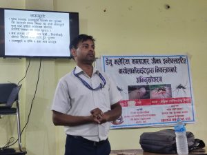 अभिमुखिकरण कार्यक्रममा स्वास्थ्यकर्मी तथा स्वास्थ्य क्षेत्रसँग सरोकारवाला व्यक्तिहरुलाई किटजन्य रोग सम्वन्धि अभिमुखिकरण गराइएको छ । किटजन्य रोगहरु डेंगु, मलेरिया,कालाजार,जिका, इन्सेफ्लाइटिस लगायत किटजन्य रोगको नियन्त्रण तथा सो रोगसम्वन्धी समुदाय स्तरमा सचेतना जगाउन अभिमुखिकरण कार्यक्रम भएको हो । महिला सामुदायिक स्वास्थ्य स्वंयसेविका लागि भएको अभिमुखिकरणमा वीरगन्ज महानगरपालिका वडा नं. १ देखि १६ सम्म का महिला स्वास्थ्य स्वंय सेविकाहरु लाई यसको रोगको रोकथाम गर्ने बारे अभिमुखिकरण गरिएको हो ।