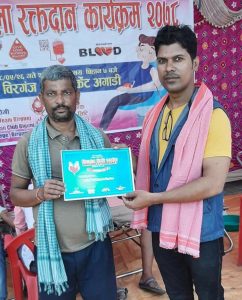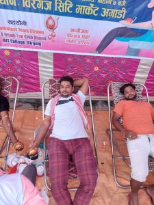 रगत दान गर्नेहरु जयप्रकाश पटेल , बिक्री सराफ , कलाम मन्सुरी , सदाम खान , सगिर अलि , मोहित गुप्ता , सोनु गुप्ता , महेश पटेल राहुल जैसबाल , उमेश गुप्ता , अन्कित गुप्ता , बालकृष्ण चौधरी , अर्जुन गुप्ता , प्रधुमन गुप्ता रहेका थिए ।