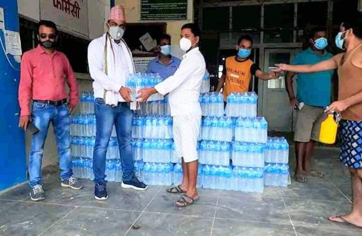 पोखरिया अस्पतालमा रहेको अाईसुलेसनमा युवा समाज पोखरियाले गरे पानी बितरण