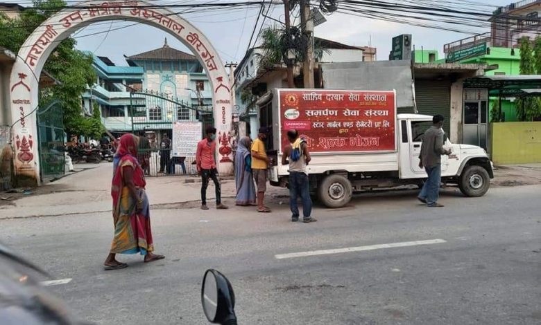 दोस्रो पटकको कोरोना लहरले गर्दा लागेको निषेधाज्ञाको कारणले भोकै पेट बस्नु परेका नारायणी अस्पतालका बिरामी कुरूवाहरूको पेट भर्न आज साँझ नवौं दिन पनि साहिब दरबार सेवा संस्था, समर्पण सेवा संस्था र स्टार मार्बल एण्ड सेनेटरी प्रा. लि. ले नारायणी अस्पतालको प्रागंणमा साँझको नि:शुल्क भोजन वितरण शुरू गरेको छ !