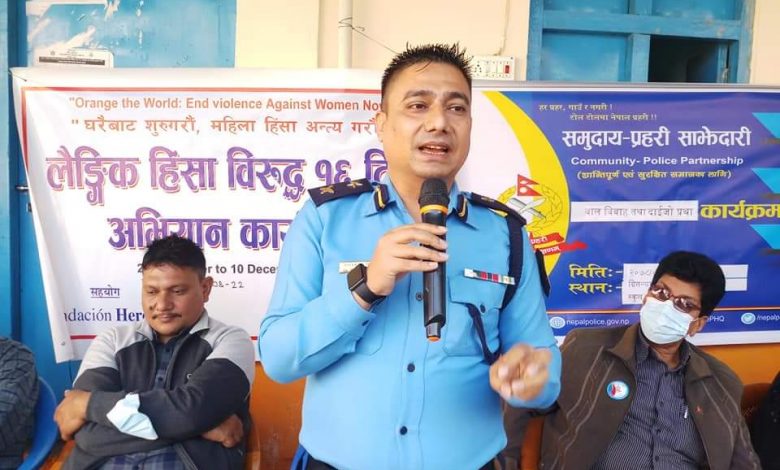 सामुदायिक सेवा केन्द्र तथा सामुदायिक प्रहरी सेवा छपकैया- २ बिरगंज पर्सा र माईती नेपाल पर्साको संयुक्त आयोजनामा “समुदाय प्रहरी साझेदारी” कार्यक्रम अन्तर्गत लैङ्गिक हिंसा विरुद्धको १६ दिने अभियान कार्यक्रम अन्तर्गत पर्सा जिल्ला बी.म.न.पा. वडा न.२ स्थित रहेको श्री ग्रीनल्याण्ड बोडिङ्ग स्कुलका छात्र/छात्राहरु लाई बाल बिबाह/दाईजो प्रथा सम्बन्धी जनचेतना मुलक कार्यक्रम सम्पन्न गरेको थियो ।