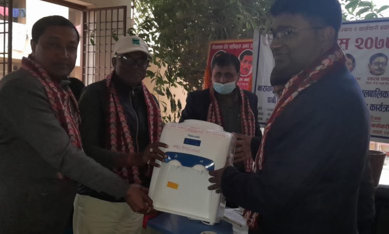 आज नेपाल निजामती कर्मचारी युनियन,पर्सा द्वारा नारायणी अस्पतालको पोषण तथा पुनर्स्थापना गृहमा सहिद दिवस मनाएको छ , कार्यक्रममा पानी तातो तथा सामान्य गर्ने मेसिन ( वाटर डिस्पेन्सर) , पानीजार लगायतका स्वच्छ पानी सेवन गर्ने उपकरण हस्तान्तरण गरिएको थियो ।