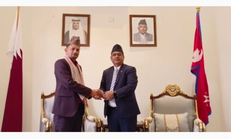 कतारका लागि नेपालका राजदूत डा. नरेश ढकाल र नेपाल पत्रकार महासंघका केन्द्रीय सदस्य इकबाल अहमद बीच शिष्टाचार भेटघाट भएको छ । बिहीबार बिहान राजदुतावासको कार्यालयमा केन्द्रिय सदस्य इकबाल अहमद र महामहिम राजदुत डा. नरेश ढकाल बीच भेटघाट भएको हो ।