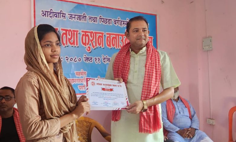 बिरगंज महानगरपालिका कार्यलयको आर्थिक सहयोग तथा ग्लोबल फाउन्डेसन नेपाल प्रा.लि. को सहयोगमा जेष्ठ ११ गते देखि संचालन भइ असार ८ गते सम्म चलेको आदिवासी जनजाती तथा पिछडा वर्गहरुको सिपमुलक डल तथा कुशन बनाउने तालिम आज एक कार्यक्रमका बिच समापन गरिएको छ।वीरगंज महानगरपालिका वडा नं २ संचालन भएको उक्त कार्यक्रम आज समापन गरिएको छ।