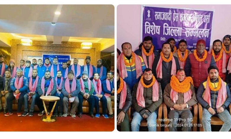 शुक्रबार वीरगन्जको हाेटल बृन्दावनमा संगठनका केन्द्रीय अध्यक्ष विश्वमणी सुबेदीकाे प्रमुख आतिथ्यतामा सम्पन्न विशेष जिल्ला अधिवेशनले शम्भु कुमार सुमनकाे अध्यक्षतामा १७ सदस्यीय जिल्ला कार्यसमिति चयन गरेकाे छ।जसको उपाध्यक्षमा हरिशंकर शर्मा ,महिला उपाध्यक्षमा रमा थामी ,सचिवमा विनोद पटेल ,सह–सचीवमा श्याम सर्राफ र कोषाध्यक्षमा संतोष साह रहेका छन् ।