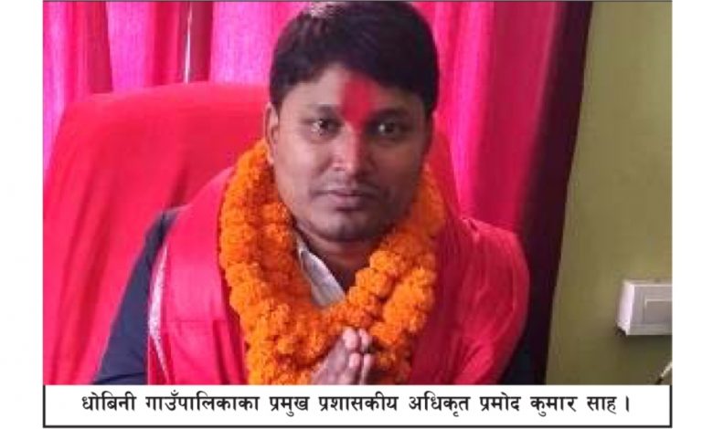 प्रमुख प्रशासकीय अधिकृत प्रमोदकुमार साह धोबिनीमा सरुवा भएर आएको सात महीनामा भएको छ । तर उनी यो अवधिमा मुश्किलले आधा महीना मात्र कार्यालयमा बसेका छन् । उनले वीरगंजमा समानान्तर कार्यालय सञ्चालन गरेर यहीबाट गापाका सबैजसो काम गर्दै आएका थिए ।