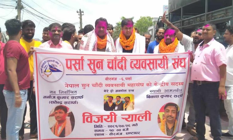 नेपाल सुन चाँदी व्यवसायि महासंघको केन्द्रिय सदस्यमा पर्साबाट निर्वाचित सदस्यहरुलाई आज वीरगंजमा भव्य स्वागत गरिएको छ ।