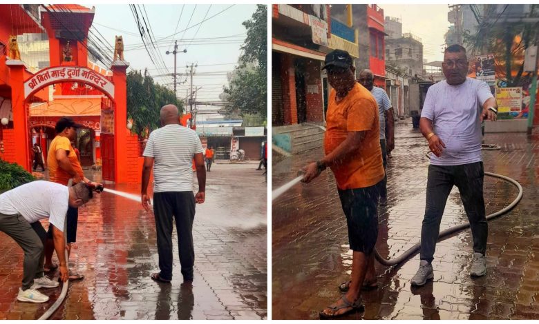 वीरगंज स्थित विर्ता माई मन्दिर एवं कृष्ण मन्दिर परिसरमा प्रहरीले सरसाफाइ गरेको छ।