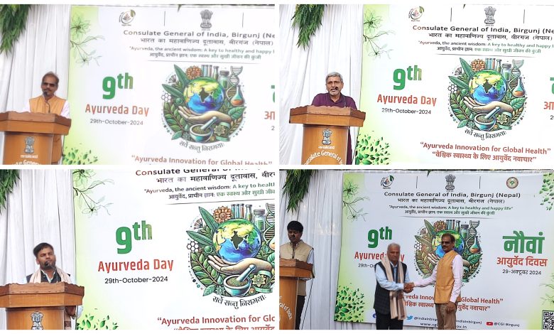 आज नौ आयुर्वेद दिवसको अवसरमा बिरगंज स्थित भारतीय राजदूतावास द्वारा आयुर्वेदको कार्यक्रमको आयोजना गरेको छ ।
