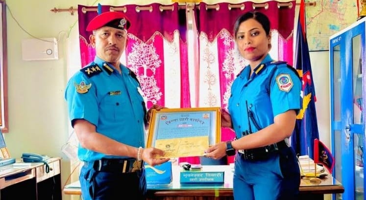 जनकपुर/जिल्ला प्रहरी कार्यालय धनुषाको असोज महिनाको उत्कृष्ट प्रहरीमा प्रहरी निरिक्षक निकिता मिश्रा भएकि छिन।