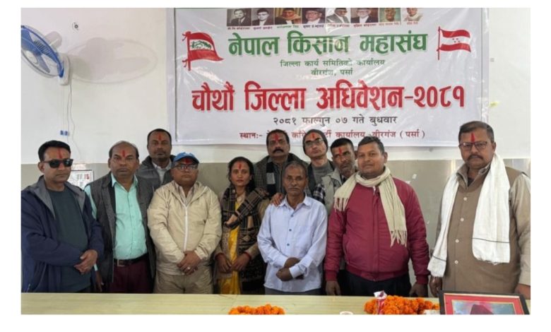 उक्त सम्पन्न जिल्ला अधिवेशन बाट नेपाल किसान महासंघ पर्साको अध्यक्षमा अरविन्द कुमार त्रिपाठी उपाध्यक्षमा महम्मद हनिफ मीया,सचिवमा दिपनारायण रौनियार,सह सचिवमा वीरेन्द्र यादव,कोषाध्यक्षमा जयप्रकाश गुप्ता,सदस्यमा मातृका ठाकुर,गौरिशंकर मुखिया विन,सोनालाल प्रसाद कुर्मि,महेन्द्र साह कानु,बिजय प्रसाद तेली ,सोनालाल प्रसाद कुर्मि,बैधनाथ साह सोनकर,बलिराम कुशवाहा,जनक यादव,अखिलेश प्रसाद यादव,रकजेश पटेल,देवी प्रसाद दाहाल,रुपेश प्रसाद यादव रहेका छन।