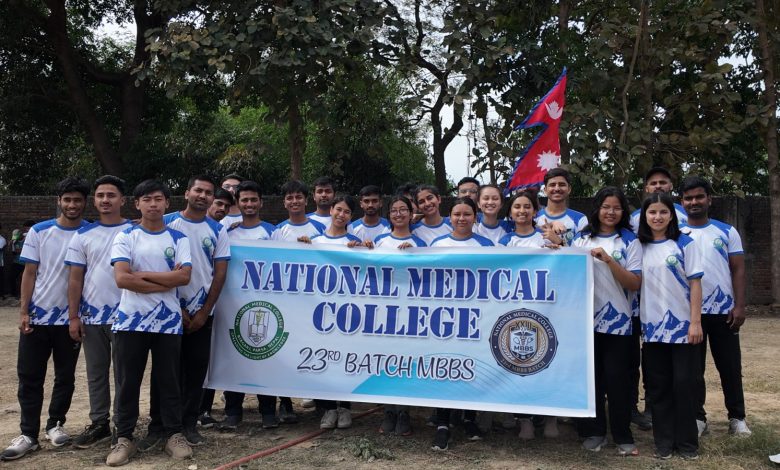 नेशनल मेडिकल कलेज तथा शिक्षण अस्पताल, वीरगञ्जद्वारा स्पोर्ट्स वीक २०८२ अन्तर्गत उद्घाटन कार्यक्रम आज भव्य रूपमा सम्पन्न भएको छ। कलेज परिसरस्थित फुटबल ग्राउण्डमा बिहान ९:३० बजेदेखि सुरु भएको उक्त कार्यक्रममा विद्यार्थी, शिक्षक तथा कर्मचारीहरूको उत्साहजनक सहभागिता रहेको थियो।