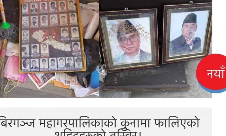 बिरगंज महानगरपालिकाको कुनामा फालिएको सहिदहरूको फोटो ।