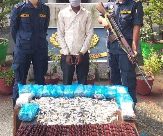 बारा जिल्ला जीतपुर सिमरा उपमहानगरपालिका वडा नं.०२ स्थित तराई धर्मकट्टा अगाडि आज बुधबार अन्दाजी बिहान ९:३० बजे वीरगंज पथलैया सडक खण्डमा इलाका प्रहरी कार्यालय सिमरा बाराबाट खटिएको प्रहरी टोलीले सवारी साधन तथा यात्रुहरुलाई चेकजाँच गर्ने क्रममा वीरगंजबाट नारायणघाट जादै गरेको ना ६ ख ८९३८ नं.को यात्रु बाहक बसमा सवार यात्रु तथा सामानहरु चेकजाँच गर्ने क्रममा बसको पछाडि सिटमा बसेका जिल्ला रौतहट साबिक गा.वि.स.बसविटी जिंगडीया वडा नं.१ हाल गरुडा नगरपालिका वडा नं.८ बस्ने राम एकवाल महराको छोरा वर्ष २७ को हरि रामलाई ५ (पाँच) वटा पोका भित्र नाईट्राभेट-१० लेखिएको ५० (पचास) पत्तामा जम्मा १५००/-(पन्ध्र सय) पिस ट्याबलेट र १७ पोकामा नुफिन लेखिएको ८५०।– (आठ सय पचास) पिस, फेनारगन लेखिएको ८५०।– (आठ सय पचास) पिस र डाईजेपाम लेखिएको ८५०।- (आठ सय पचास) पिस गरी जम्मा २,५५०।– (पच्चिस सय पचास) एम्पुल अवैध लागू औषध आफ्नो साथमा बोकि ल्याएको झोला भित्र लिकाई छुपाई राखेको अवस्थामा फेला पारी पक्राउ गरी थप अनुसन्धान कार्य भई रहेको बारा प्रहरीले जनाएको छ ।