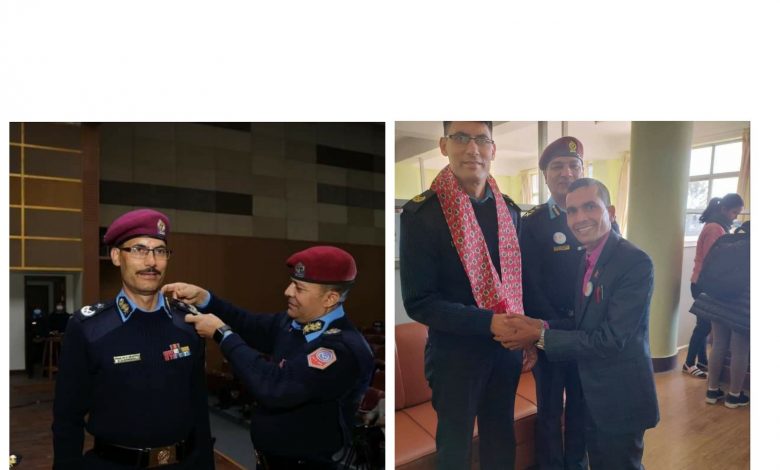 प्रहरी महानिरीक्षक शैलेश थापा क्षेत्रीले प्रहरी प्रधान कार्यालयमा शुक्रबार आयोजित एक समारोहबीच प्रहरी अतिरिक्त महानिरीक्षक पोखरेललाई दर्ज्यानी चिन्हद्वारा सुशोभन गर्नुभएको हो ।