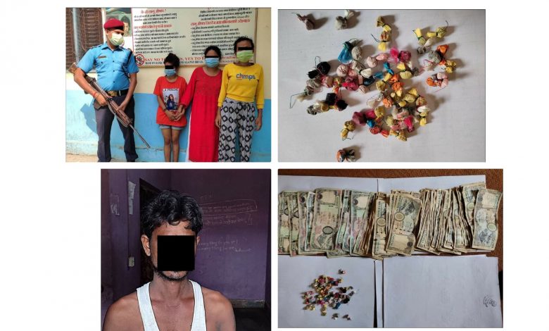 मिति २०७८।०२।२१ गते अं. १५;३० बजेको समयमा जिल्ला बाँके नेपालगंज उ.म.न.पा.०२ न्युरोड स्थित सन्ध्या नास्ता पसलमा अबैध लागू औषधको कारोबार भैरहेको छ भन्ने सुचनाको आधारमा जिल्ला प्रहरी कार्यालय बाँके तथा लागू औषध नियन्त्रण ब्युरो नेपालगंज शाखाबाट खटिएको संयुक्त प्रहरी टोलिले उक्त स्थानमा गई खानतलासि गर्दा निम्न स्थान बस्ने निम्न ३ जना महिला र १ जना पुरुष जना ब्यक्तिहरुको साथबाट प्लाष्टिकले सानो पुडिया बनाई राखेको ५६ पुडिया (१२ ग्राम २०० मिलिग्राम) ब्राउन सुगर जस्तो देखिने धुलो पदार्थ र नगद रु.४१,५००।-(एक चालिस हजार पाँच सय) रकम सहित फेला पारी बरामद गरी निजहरुलाई नियन्त्रणमा लिई सम्मानित जिल्ला अदालत बाँकेबाट दिन ७ म्याद थप गरी आवश्यक अनुसन्धान एवं कारवाही अघि बढाईएको ।