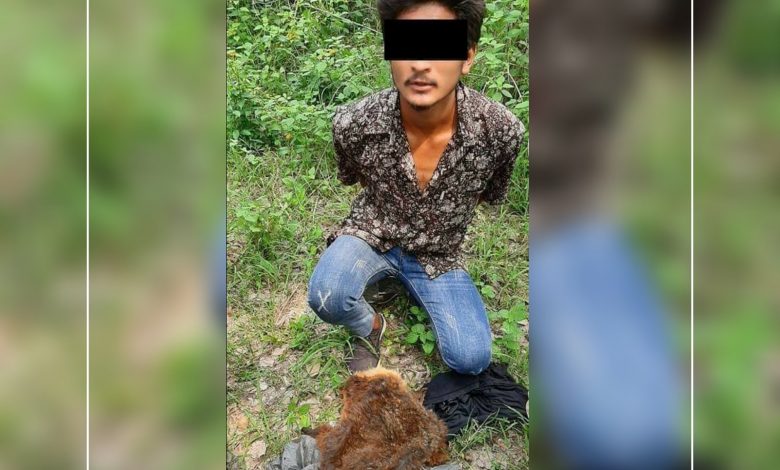 आज मिति २०७८।०२।२५ गते अन्दाजी १०:१५ बजेको समयमा जिल्ला कैलाली गोदावरी नगरपालीका वडा नम्बर ५ गेटा सामुदायिक वनबाट रेडपाण्डाको छाला बोकी लगी रहेको भन्ने सुचनाका आधारमा संघिय प्रहरी ईकाई कार्यालय धनगढी (हाल महेन्द्रनगर कन्चनपुर) र ईलाका प्रहरी कार्यालय मालाखेती कैलालीबाट खटिएको सयुक्त प्रहरी टोलीले जिल्ला बझाङ वित्थड गाउँपालिका वडा न.५ देउलेख बस्ने बर्ष २३ को अमर धामीलाई झोलामा बोकि हिडि रहेको अवस्थामा रेडपाण्डाको छाला थान १ फेलापारी बरामद गरी निज अमर धामीलाई समेत पक्राउ गरी आवश्यक कारबाहीका लागी सब डिभिजन वन कार्यालय अत्तरिया कैलालीमा बुझाएको ।जिल्ला प्रहरी कार्यालय कैलाली बाट प्राप्त खबर।