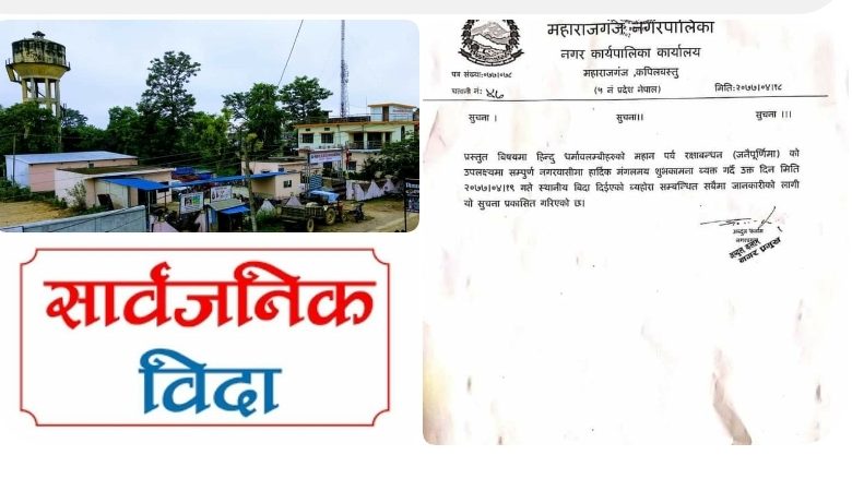 कपिलवस्तु जिल्ला काे महाराजगन्ज नगरपालिकाले रक्षा बंधन का दिन सार्वजनिक विदा दिने निर्णय गरेको छ ।